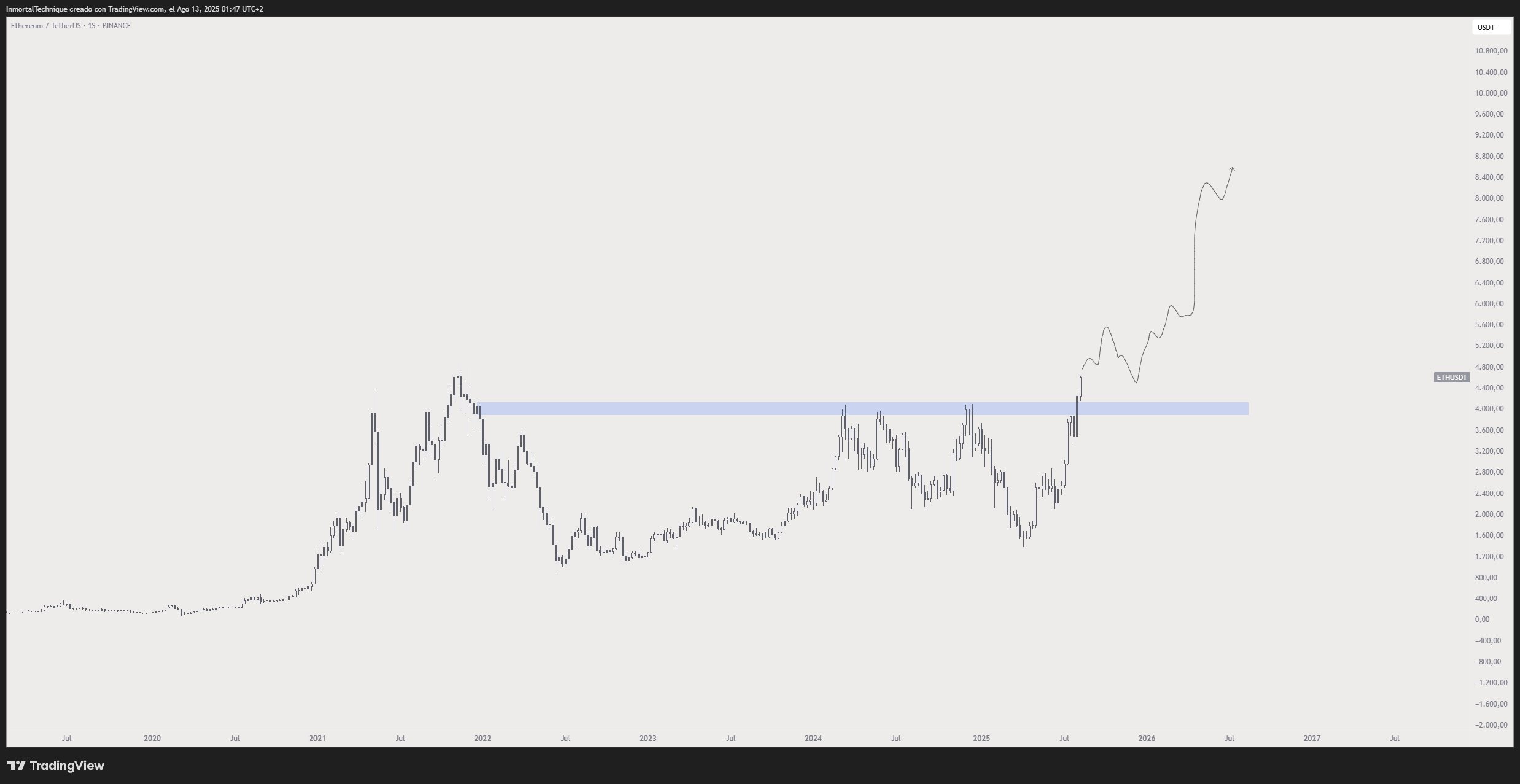 Начать разбиратьсяКрипто-трейдер Inmortal, человек, чье имя предполагает, что он уже выиграл игру под названием жизнь (или, возможно, просто еще не проиграл), рассказывает своим 235 000 подписчикам в X, что считает, что Ethereum в конечном итоге пробьет свои исторические максимумы и взлетит до пятизначной цены. Это как сказать, что однажды ущелье Чеддар будет заполнено сыром.