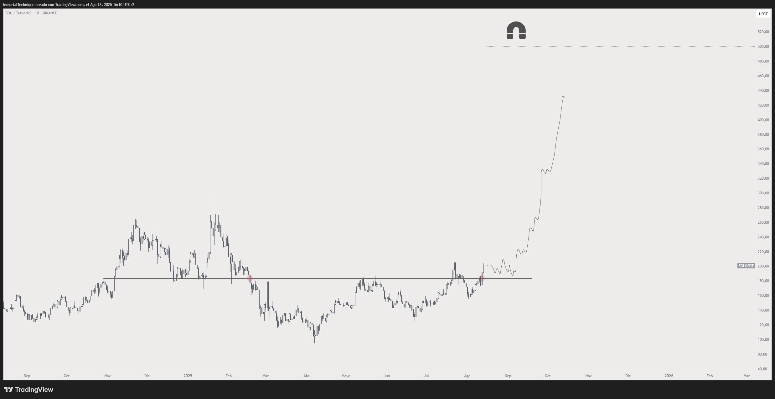 Рассматривая Solana, Inmortal предсказывает, что SOL вырастет на 170% от текущих цен к концу бычьего рынка. Это как сказать, что Библиотекарь наконец-то научится читать.