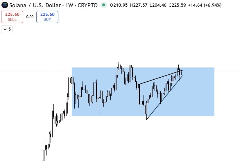 Дышите глубже, взгляните на еженедельную сагу: $SOL запутался между $250 и $102 с марта 2024 года, свидетельство человеческой настойчивости или упрямого безумия?